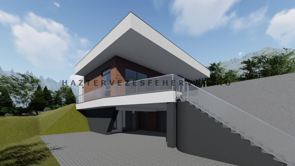 7 szobás, garázsos minimalista családi ház 3D látványterve.