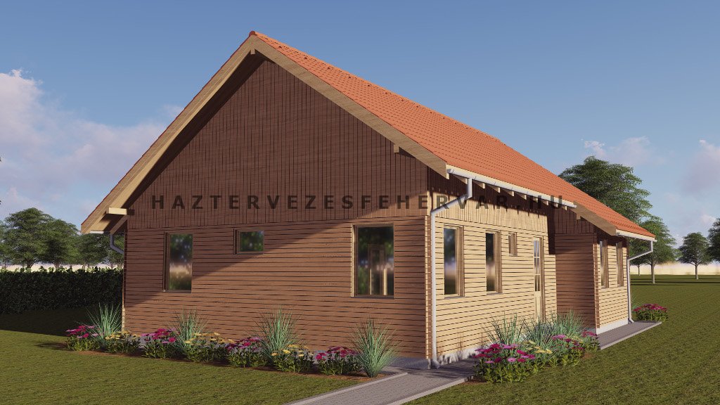 A 9 helyiségből álló könnyűszerkezetes ház kényelmes együttélést tesz lehetővé a család minden tagja számára.